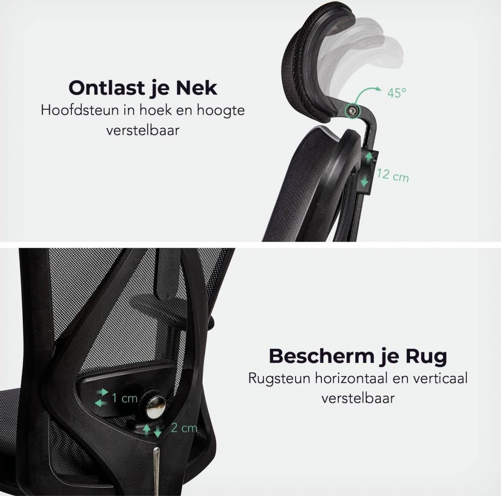 Onze beste koop is de ergonomische bureaustoel van het merk LifeGoods. Hoewel dit merk je in eerste instantie misschien niets zegt, maken ze hele goede bureaustoelen voor een mooie prijs. Deze stoel heeft veel verschillende verstelmogelijkheden en is geschikt voor mensen tot ca. 1.90 meter. De verstelmogelijkheden zijn: